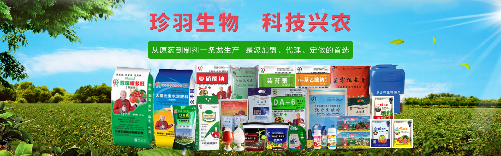 河南珍羽生物科技有限公司,位于中國中原國際商貿大都市鄭州國際會展中心就近。本公司是一家科研,開發,生產,加工,銷售為一體的綜合性農化企業。公司董事長,總經理,科研專家具有生產技術和植物生長調節劑原料技能,有20年的研發生產經驗現已服務成就上萬家大,中,小肥料廠家,在新型高端植物生長調節產品中,不斷給一些中小型企業提供高效的產品配方。因為珍羽生物科技,技術力量雄厚,生產工藝先進,根據國家政策要求,成功研發了高端新型的無色,無味,無殘留,不含激素、農藥成分的植物生長調節劑。應用到農作物上無任何藥害。